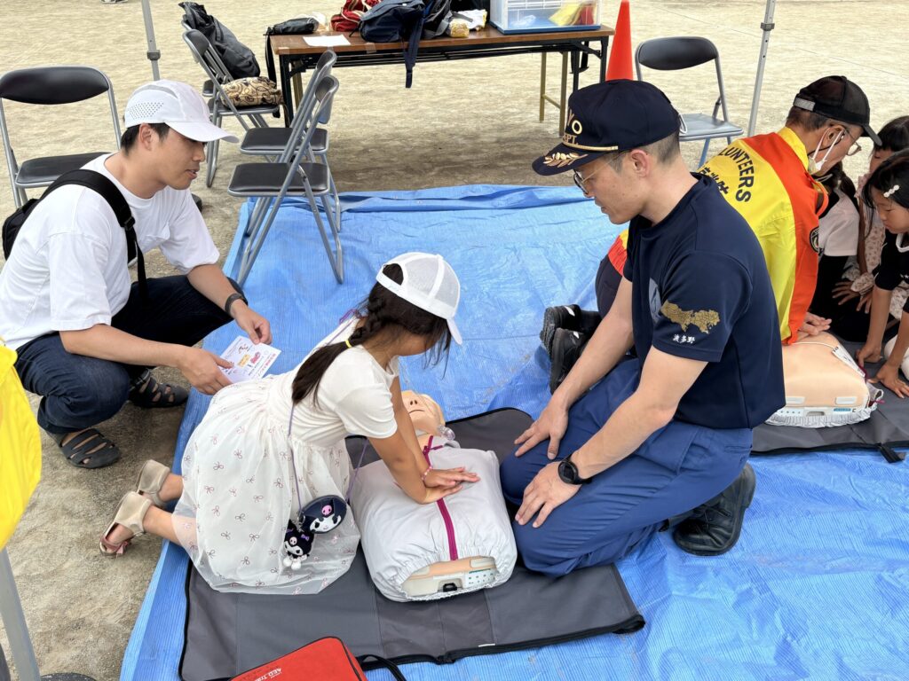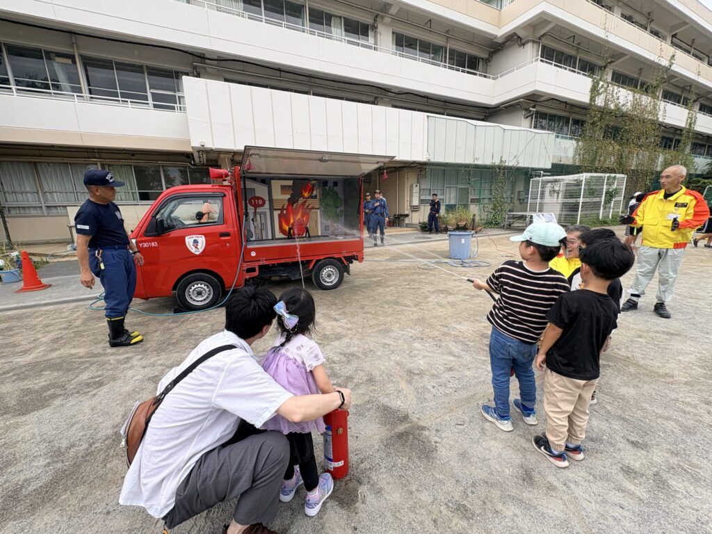 消火器による消火やAED、煙の体験をする防災スタンプラリーやバルーンアート、スーパーボールすくいのほか、焼きそばや焼き鳥、わたあめなどのお店も並んで、多くの家族連れが秋の地域イベントを楽しんでいました。
