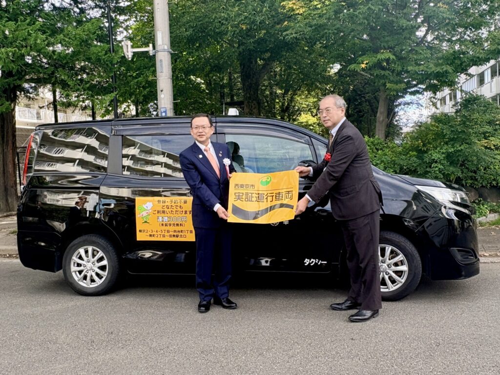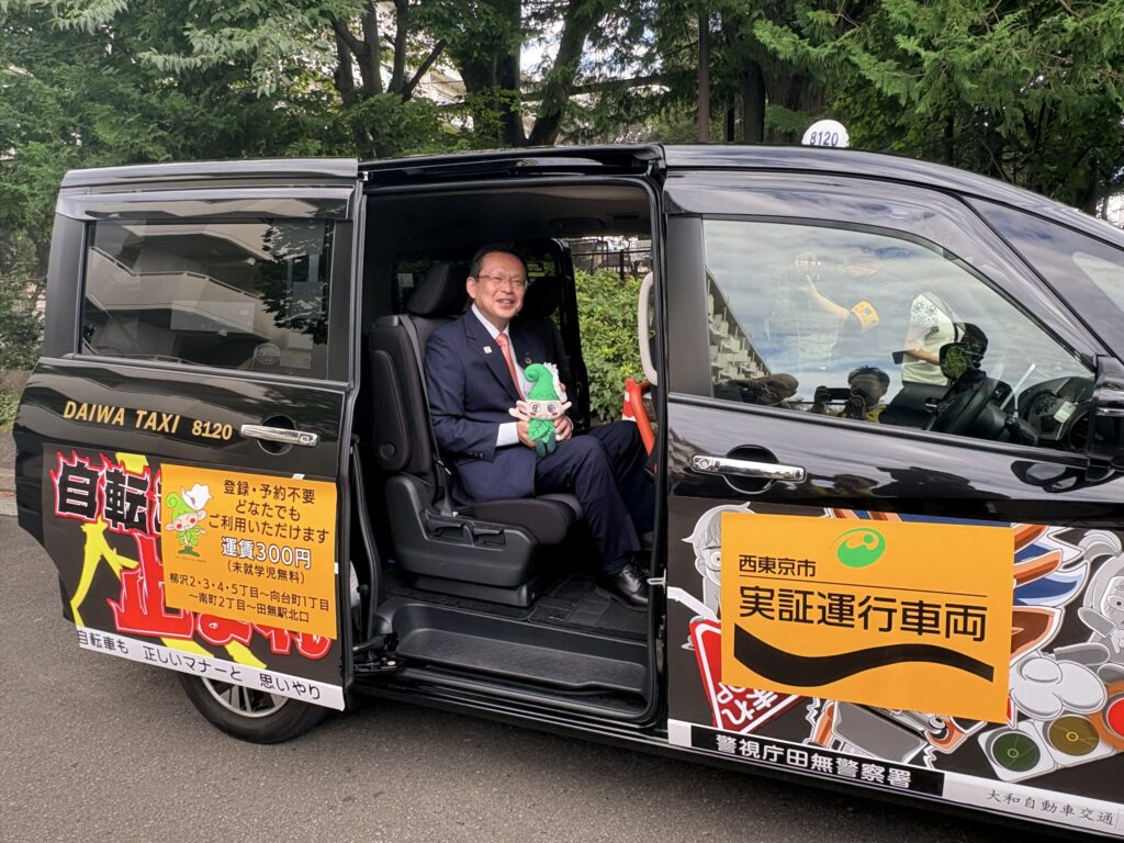 西東京市の南部地域で10月6日から、誰でも乗れる乗り合いタクシーの実証運行が始まり、出発式が行われました。