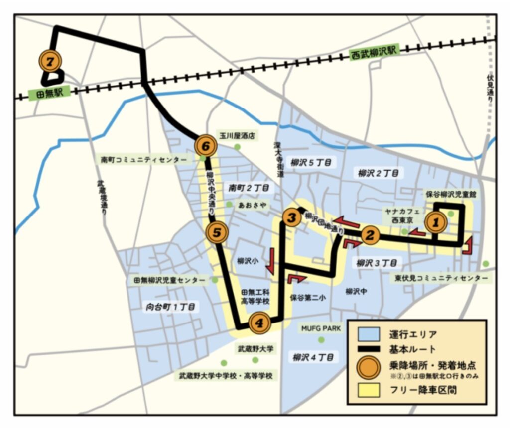 運行するのは田無駅北口と柳沢2丁目にある「むくのき公園」を往復するミニバンサイズのタクシーで、途中の5カ所からも乗ることができます。