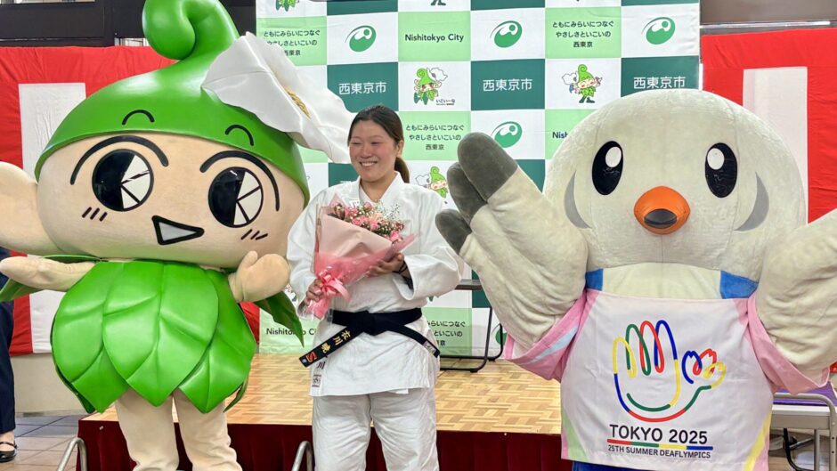 11月15日から東京各地で開催される”東京2025デフリンピック”に西東京市在住の衣川 暁(きぬがわ あかつき)選手が日本代表選手として出場します。衣川選手を応援する壮行会が11月4日に西東京市役所で開催されました。