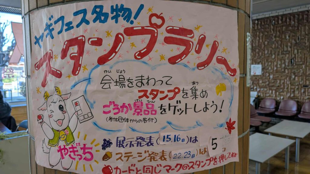 ヤギフェス名物のスタンプラリーでは参加団体から寄付された景品がもらえますよ。
