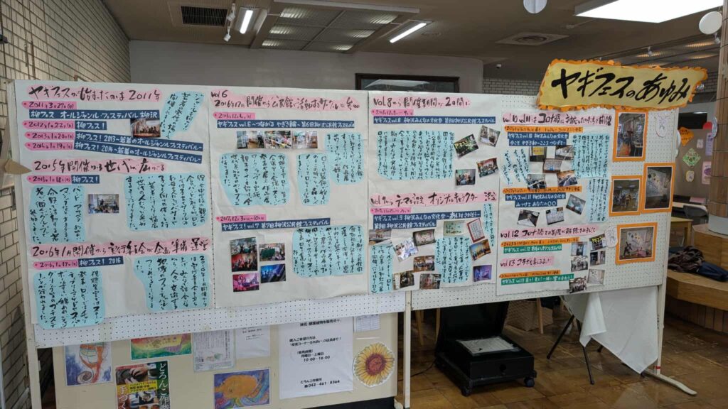 ロビーにはヤギフェスのあゆみも見る事ができます。写真付きで温かい作品です。