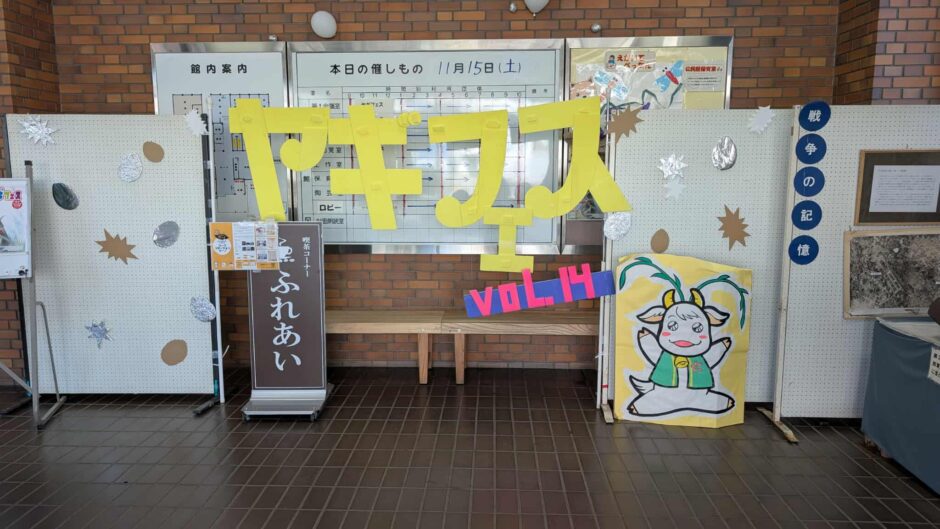 ロビーにはヤギフェスのあゆみも見る事ができます。写真付きで温かい作品です。