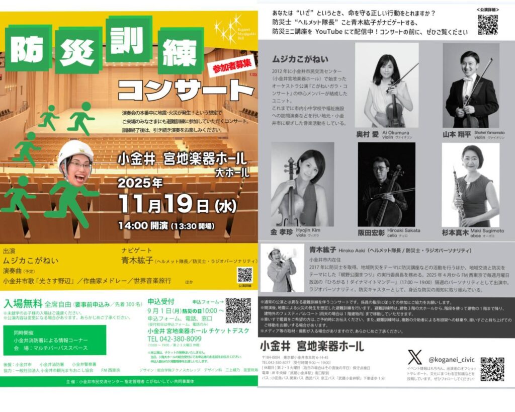 【11/19防災訓練コンサート】コンサートの本番中に災害が発生したら!/小金井 宮地楽器ホール | FM西東京 84.2MHz