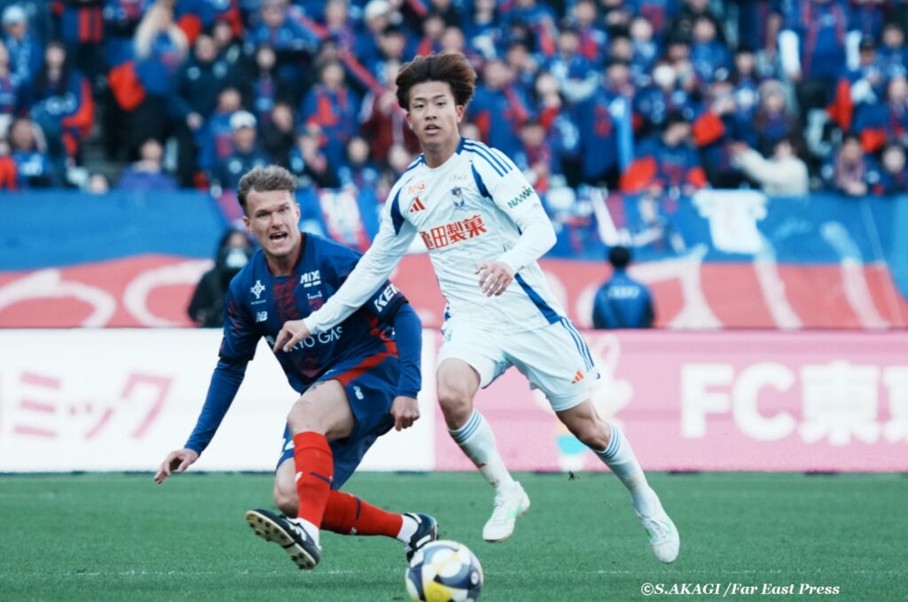 リーグ後期の欠かせない選手、佐藤恵允選手。180㎝に満たない公式身長ですが意外と高さも競り勝つ。