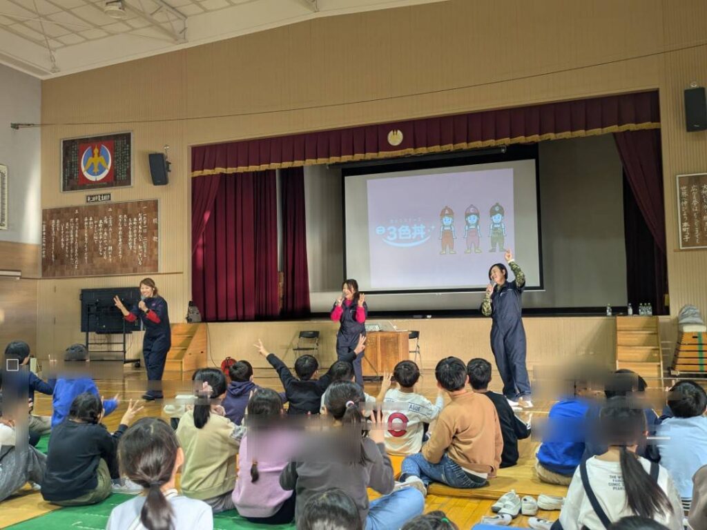 小学生が自分で身を守るための三択クイズ、インタビューなど、とても楽しい防災講座でした。