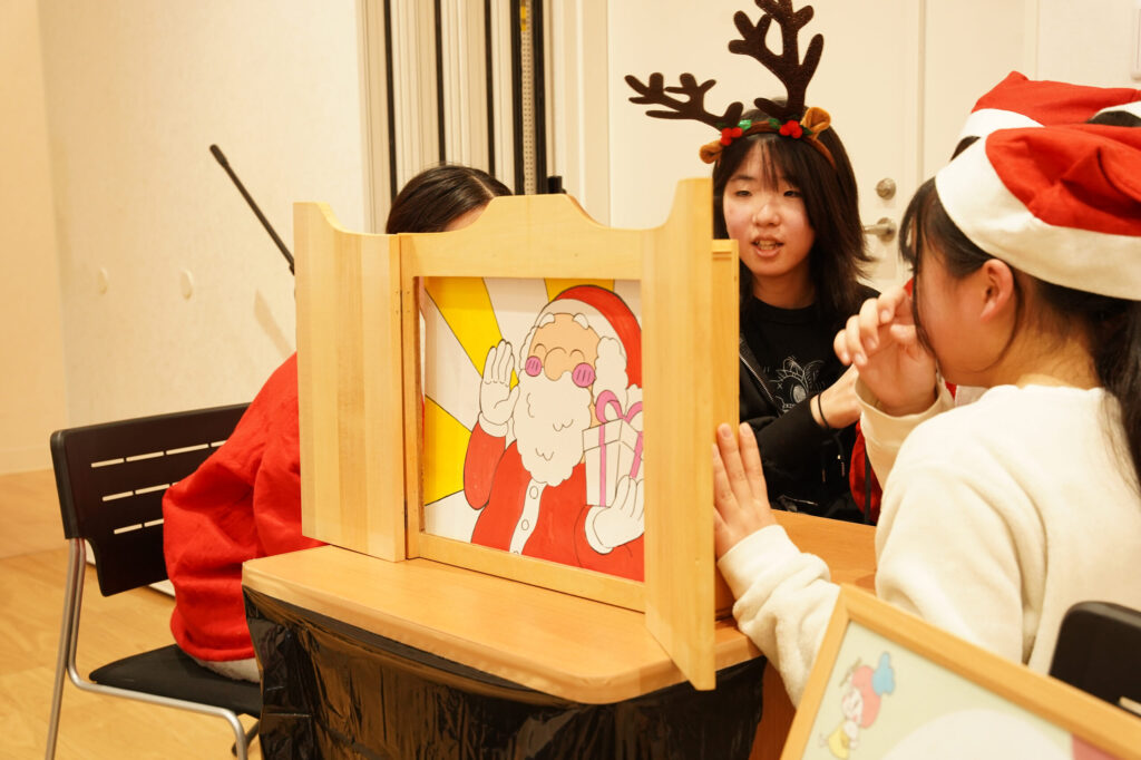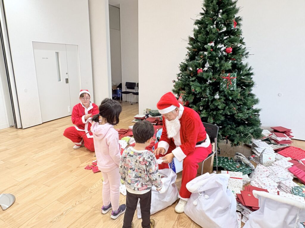 大きなクリスマスツリーの前では、絵本やおもちゃをサンタさんからプレゼント🎁