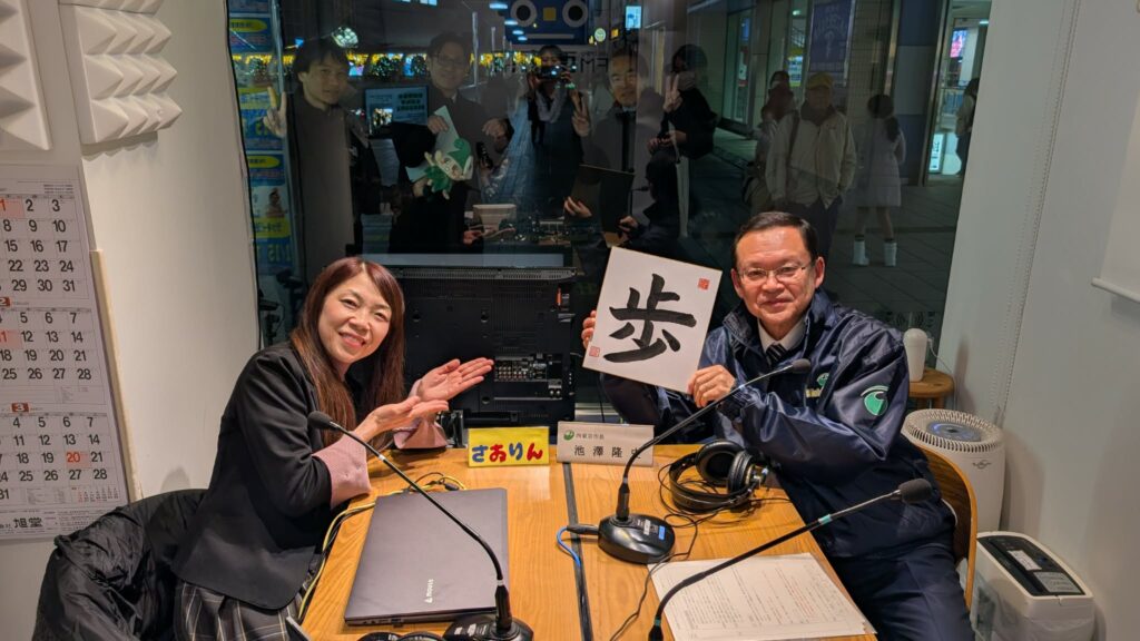 前半は、【今年の一字】を披露していただきました!市長からさおりんに今年の一字はなんでしょう?とクイズを出題!さおりんは当てることができたのか・・・・?!