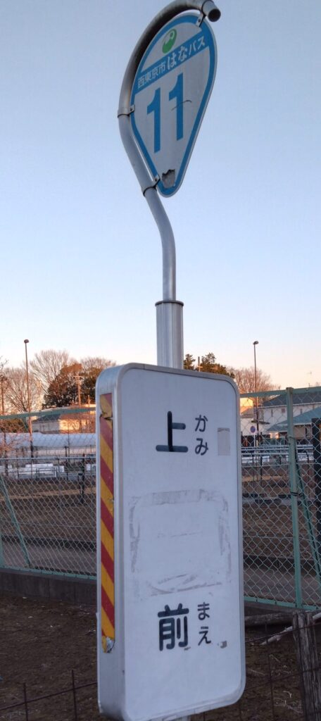 ・はなバス第1ルートの停留所にある「上後」「上前」も下保谷の小字名ですが、もしかしたら「上=神」なのではないかと湯田聡は推測しました。上前停留所は天神社の西側にありますが、字上前は天神社一帯であり、字上後は神社の裏側です。田無近辺地方史研究会の滝島俊さんにお尋ねしたところ、湯田の推測は正しいとのこと。