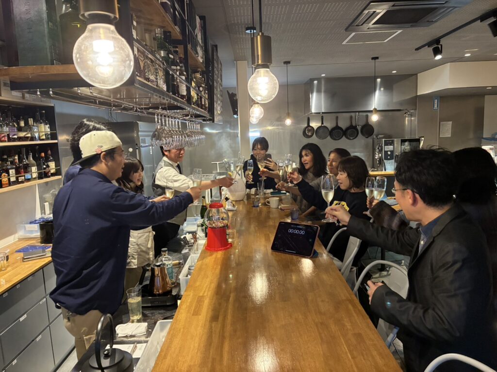 なじみのお客様と「かんぱ~い!!」 温かい雰囲気と、お客様とお店、スタッフとの仲の良さが伝わります(写真右)