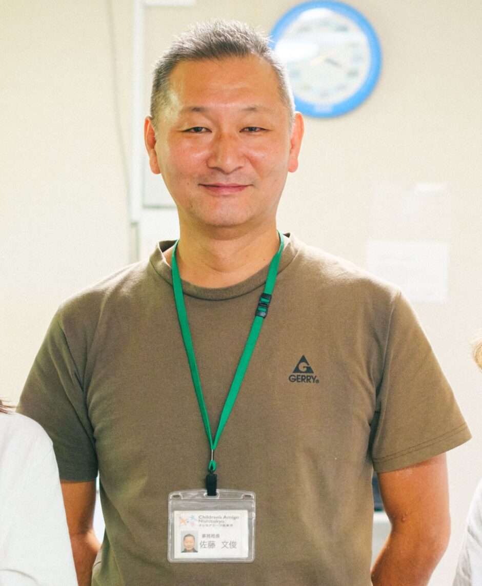 NPO法人子どもアミーゴ西東京で事務局長をしています、佐藤文俊と申します。
