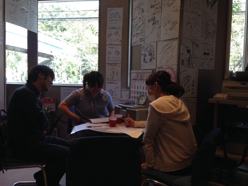 画像が少し暗いですが、(逆行すみません。。。)打ち合わせの様子。