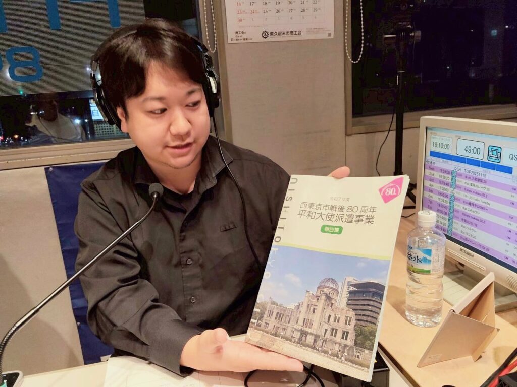今年最後のご出演は「戦後80周年西東京市平和大使派遣事業」から平和大使のお二人と事業を支えた若者スタッフの方々を番組にお迎えしました。