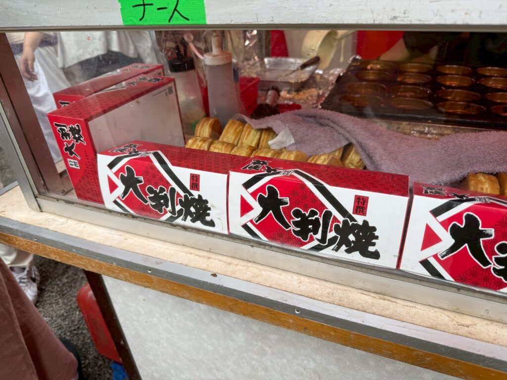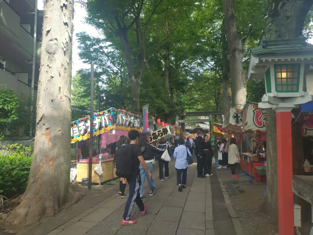 鳥居をくぐるとすぐに、屋台からのいい香りがしてきます。