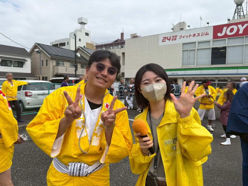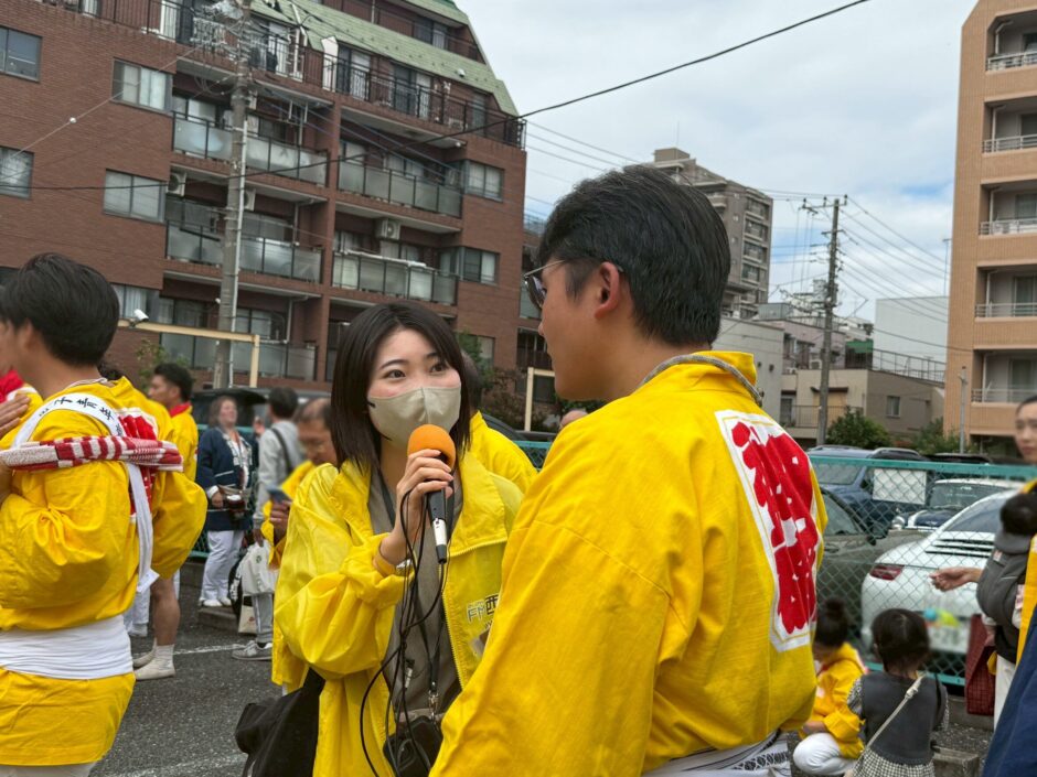 中継では、お神輿の担ぎ手として初参加のお兄さんにもお話を伺いました!