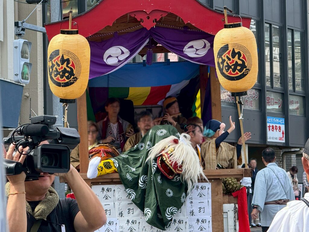 リポート中、お神輿に近づくことができずあわあわとしているところ、
