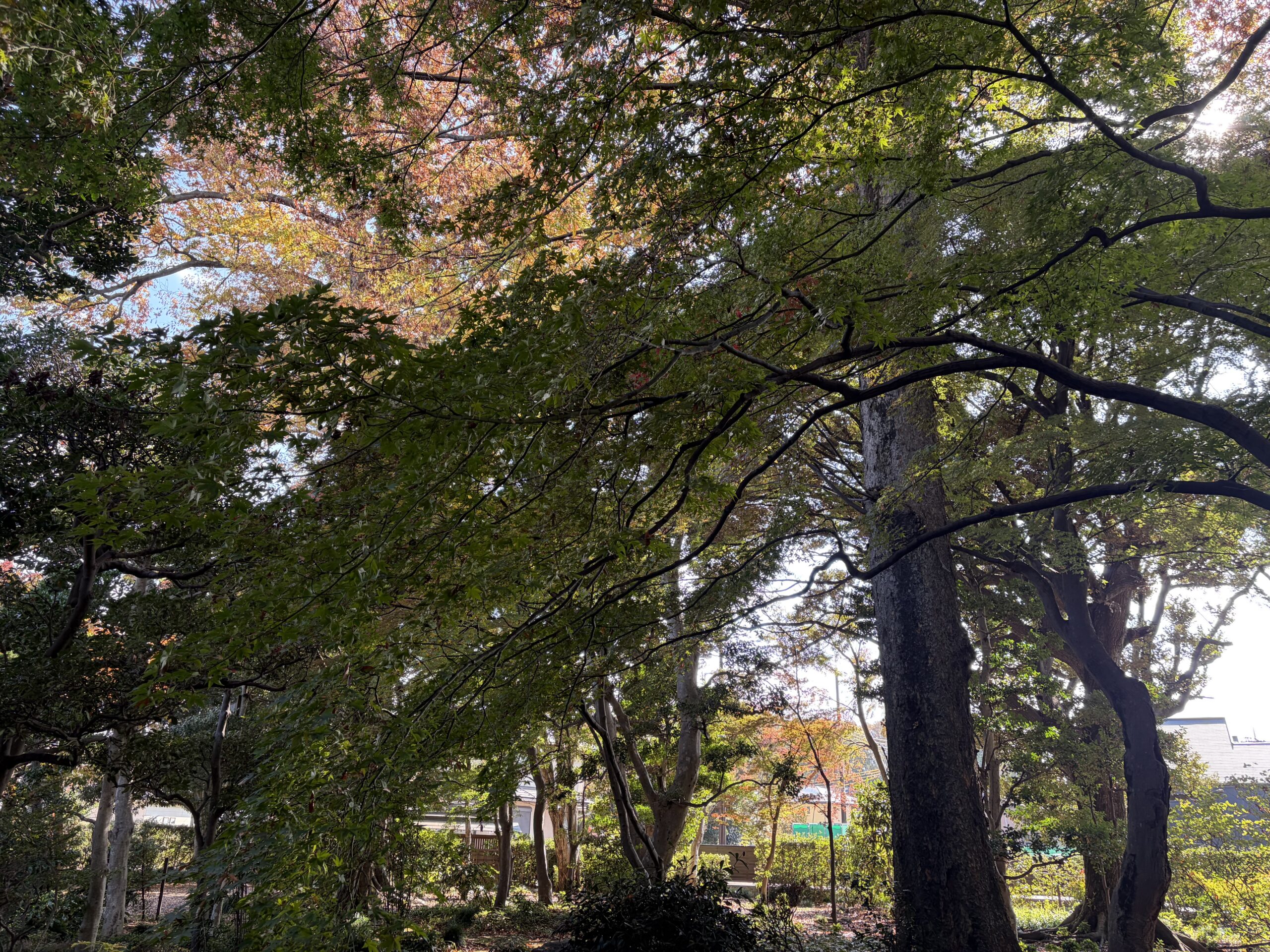 コンビニのそばにある道を入って、路地を曲がると自然豊かな空間が目の前に広がります。