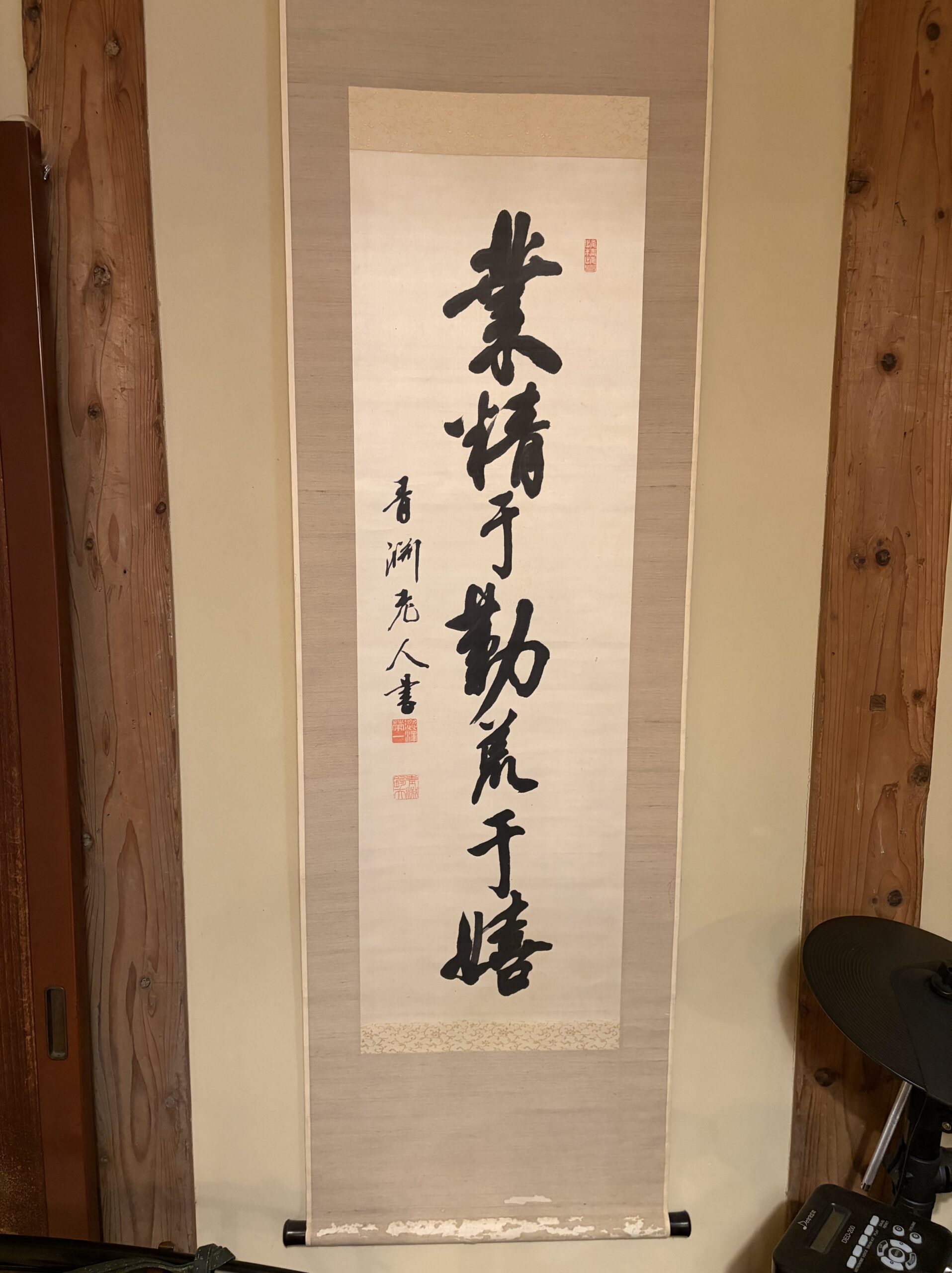 渋沢栄一さん直筆の掛け軸や、大昔の「保谷駅前商工会」の旗など。