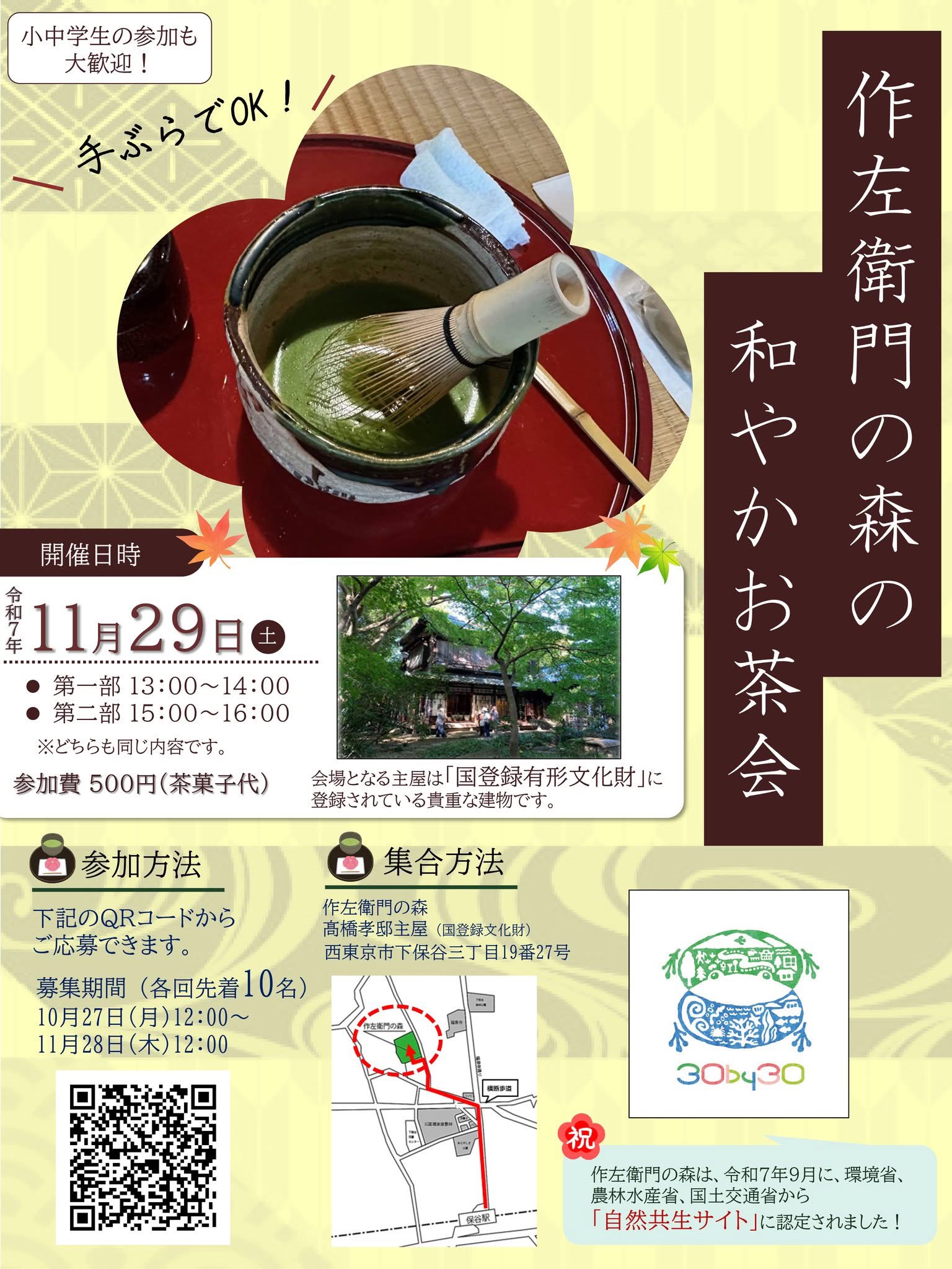 作左衛門の森をより多くの人に知ってもらうためのお茶会「作左衛門の森の和やかお茶会」を開催