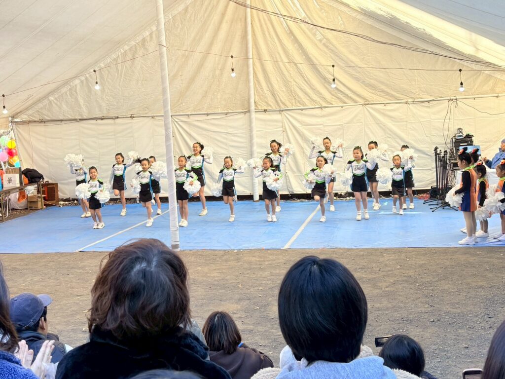 日曜お役立ち隊の中継時間には市内のチアダンスチーム「POPINS(ポピンズ)」がステージに!