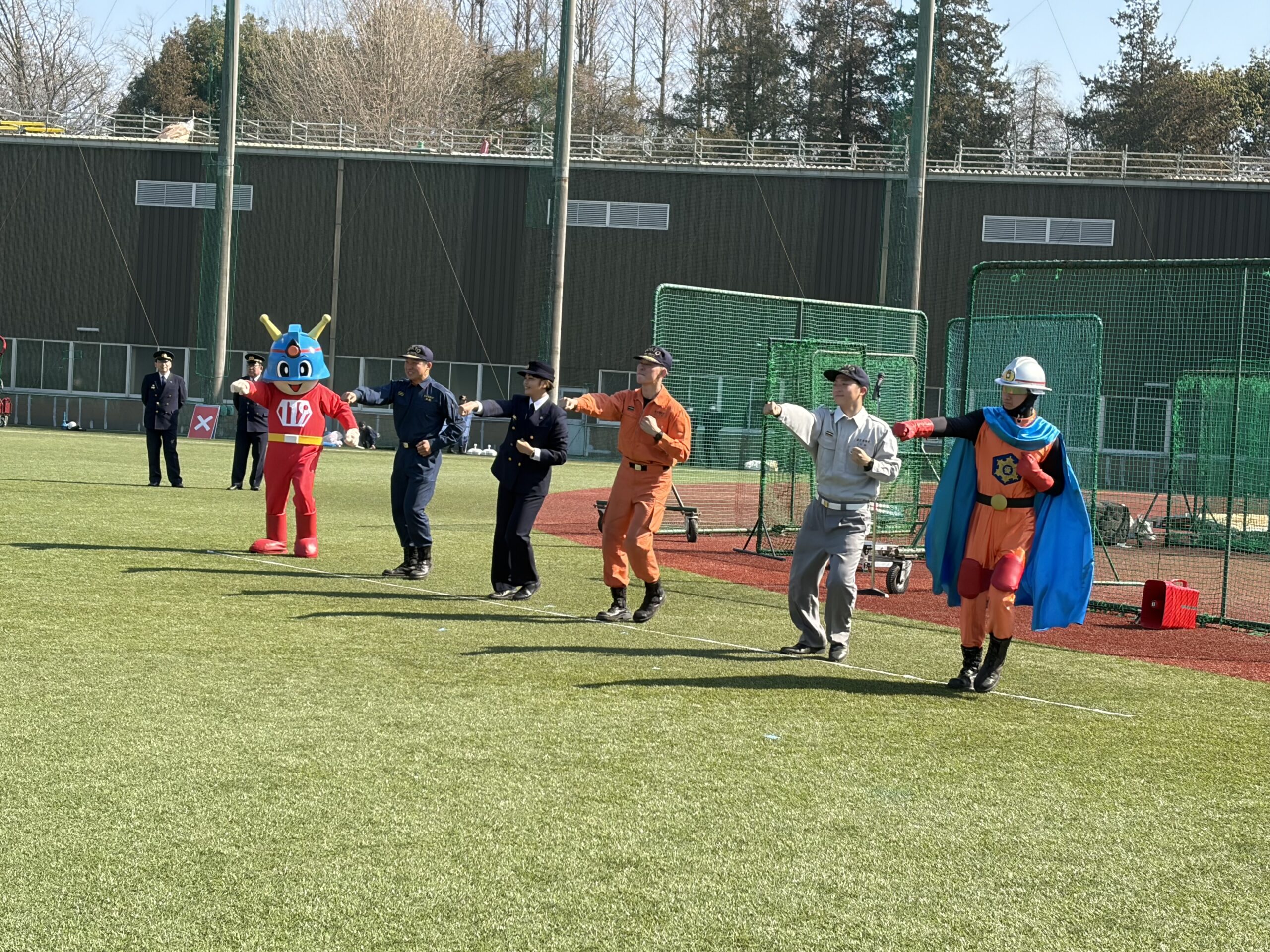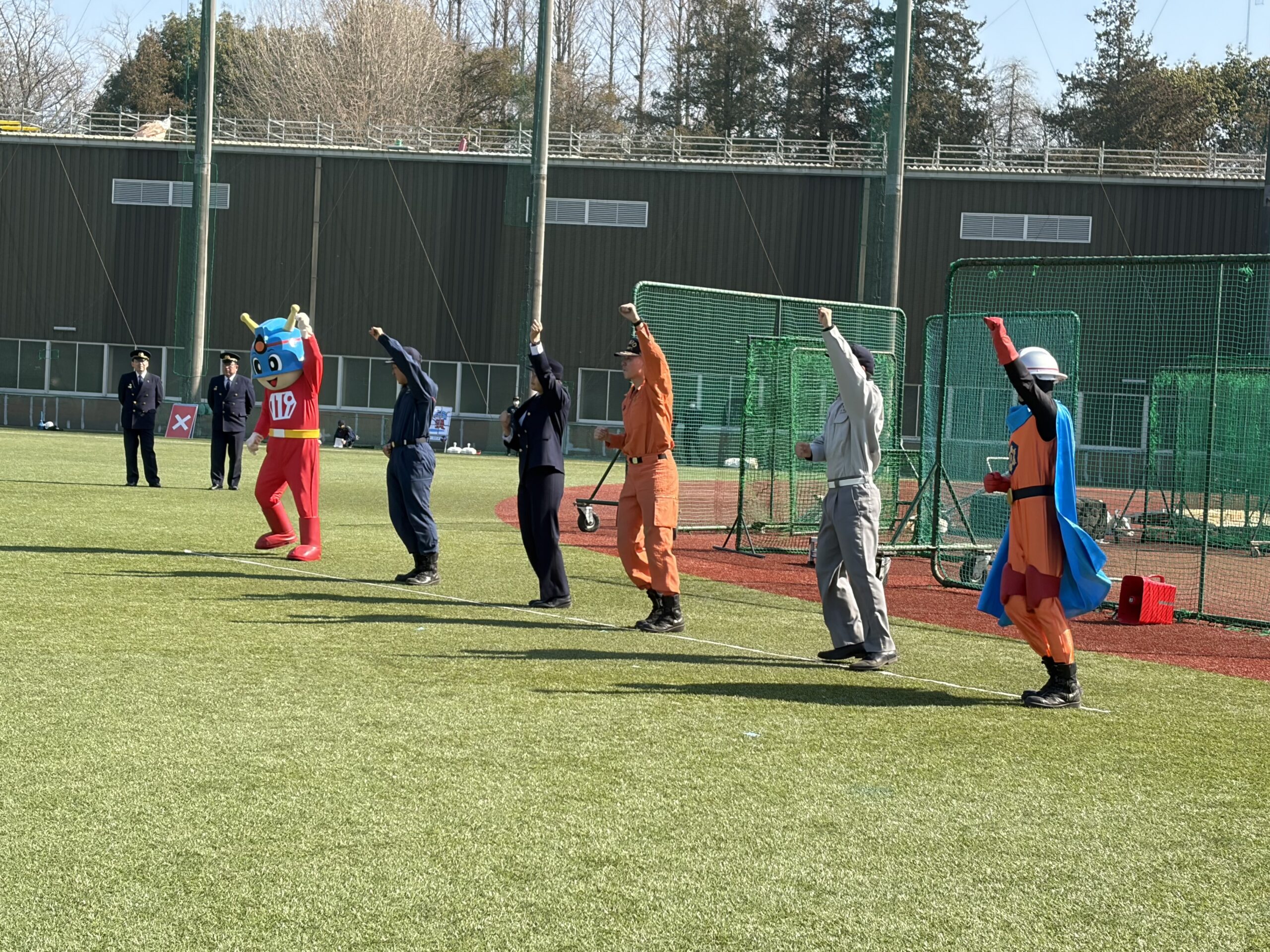 最後は親子揃って、火災予防うんどう。東京消防庁のキュータくんも来てくれたよ