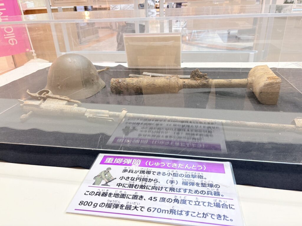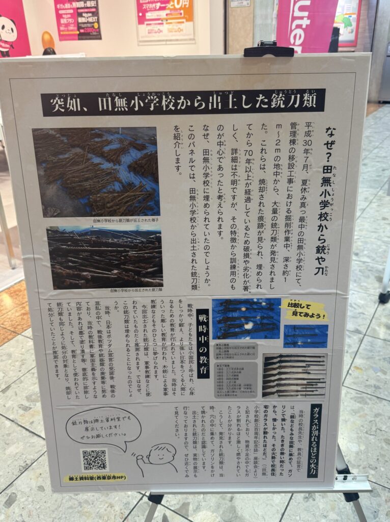 こちらは、平成30年に田無小学校敷地から出土した大量の迫撃砲や小銃の一部です。