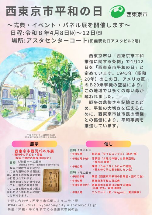 戦争の悲劇を忘れないために、西東京市は毎年4月12日を中心に様々な行事を実施し、