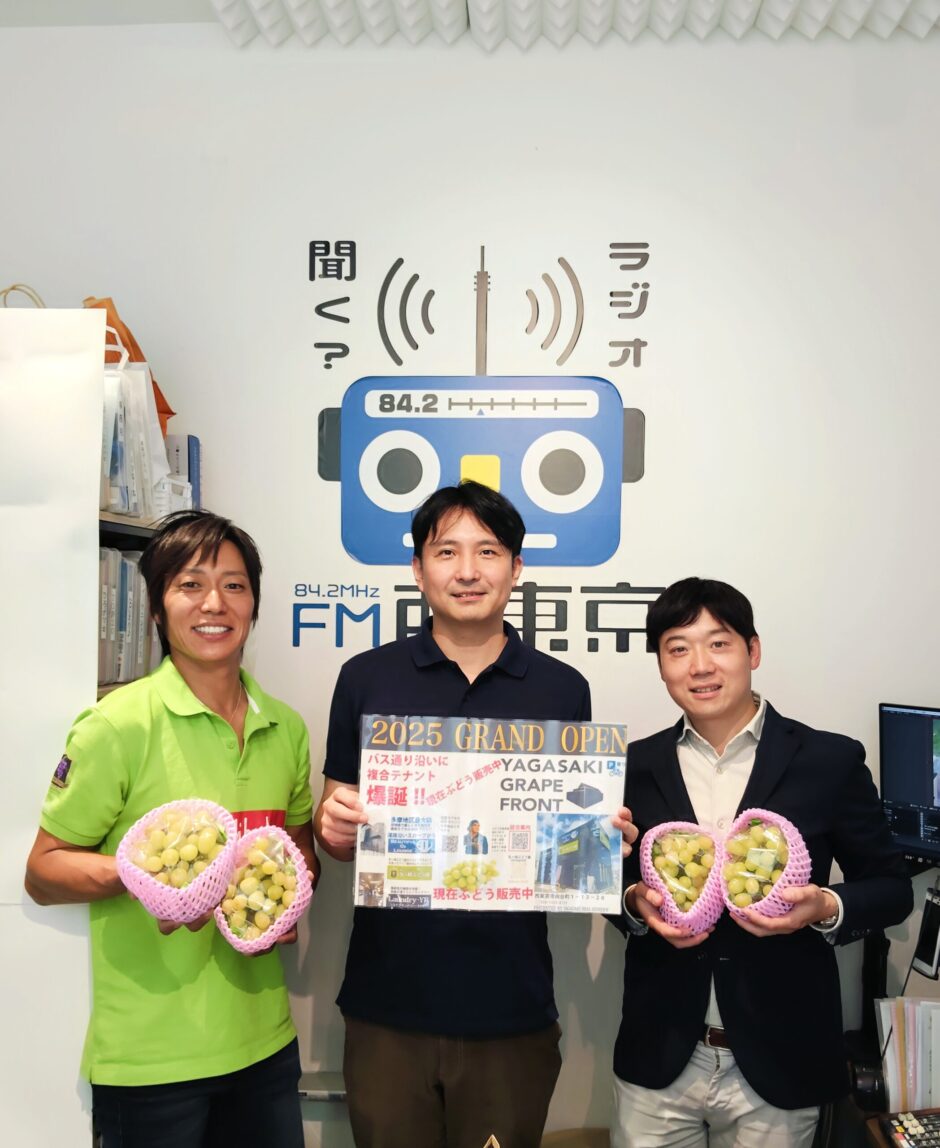 パーソナリティ矢ヶ崎泰幸が自身のぶどう園や街の魅力について紹介し、