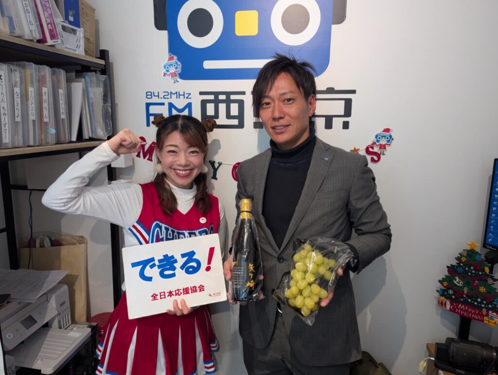 フリーアナウンサーで出勤途中のビジネスマンを勝手に応援するチアリーダーでもある「(一社)全日本応援協会代表理事」のクミッチェルこと朝妻久実さんをゲストにお迎えしてお送り致しました。