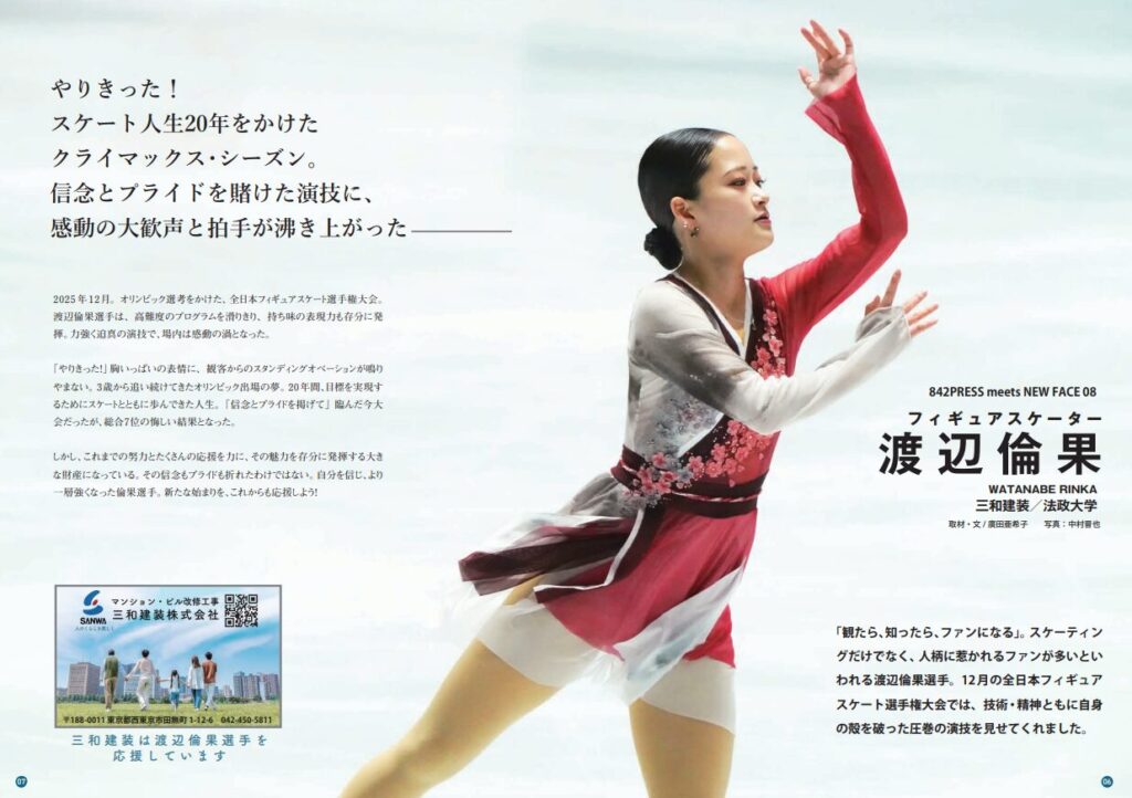 「観たら、知ったら、ファンになる」。スケーティングだけでなく、人柄に惹かれるファンが多いといわれる渡辺倫果選手。12月の全日本フィギュアスケート選手権大会では、技術・精神ともに自身の殻を破った圧巻の演技を見せてくれました。