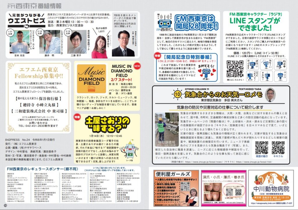 西東京エリアの情報が満載のフリーラジオマガジン「842PRESS」26年1月号をご紹介!