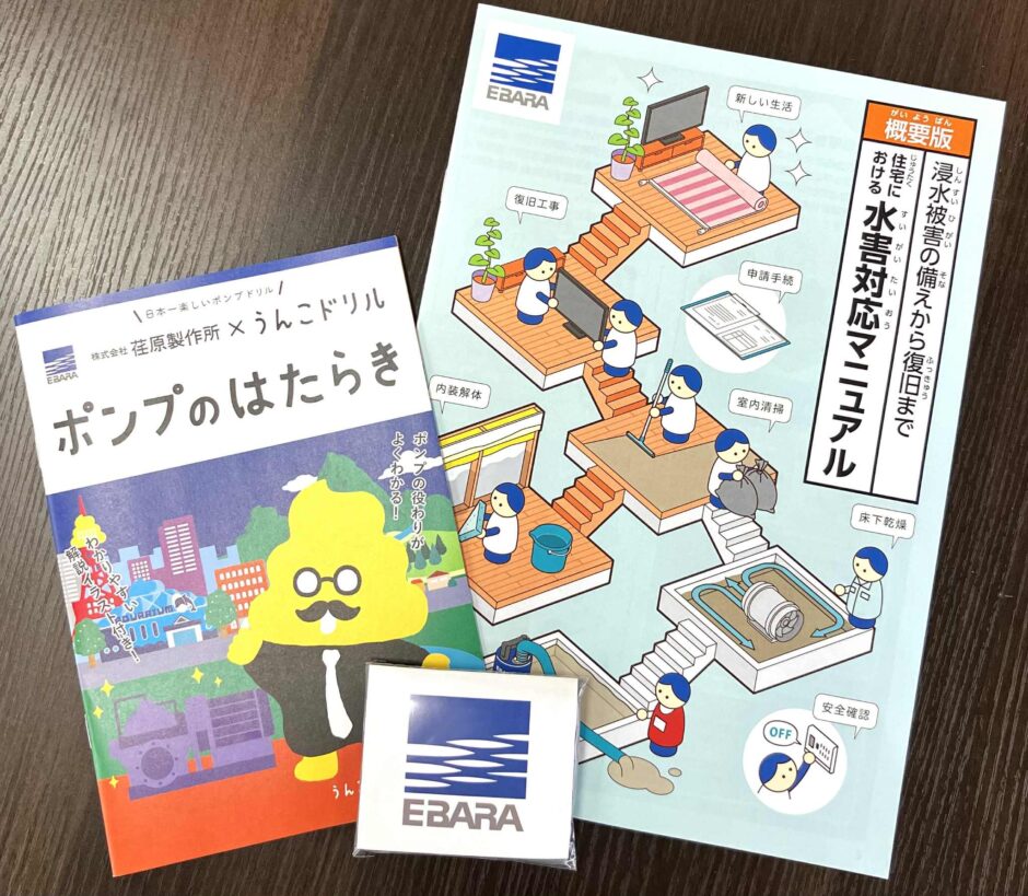 10/5(日)放送回にご出演いただいた株式会社荏原から、浸水害に会う前に是非知って欲しい備えて欲しい「水害対応マニュアル・携帯トイレ・ポンプのはたらきがわかる絵本」をセットで10名様にプレゼント!